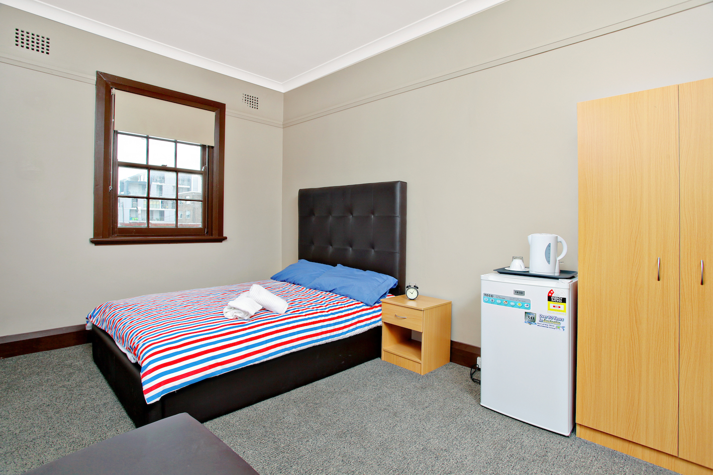 There are 10 rooms at the Campsie Hotel which are clean and comfortable. Each room has a wardrobe, desk & chair, ceiling fan, tea & coffee, bar fridge and toiletries. The rooms we offer are double rooms, triple rooms and one of our triple rooms includes a balcony. All rooms come with shared bathroom facilities.