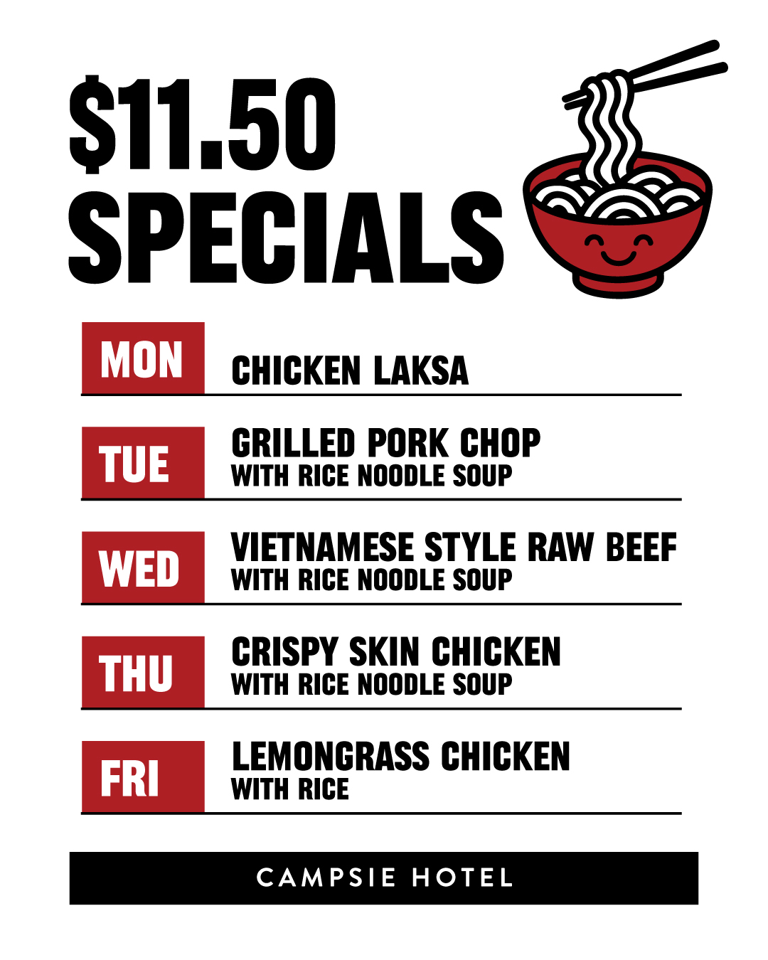 Noodles are back in a BIG way to the Campsie Hotel this winter as we roll out a new-look menu full of Asian classics and traditional pub dishes. Open 7 days from 11am. Plus...check out our sunny beer garden!